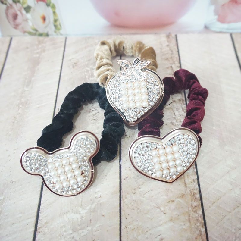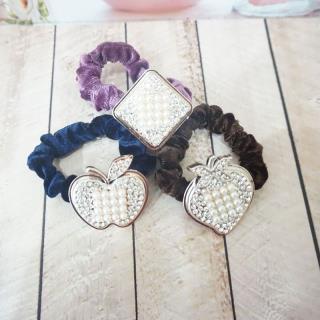Ikat rambut bludru dengan aneka warna dan terdapat hiasan mutiara di tengahnya membuat penampilan anda terlihat cantik