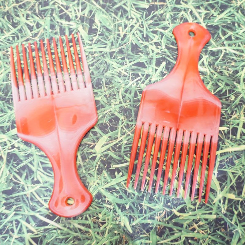 Sisir garpu dengan desain yang unik dan memilki aksen warna sembur berfungsi untuk memisahkan antara rambut kusut dengan rapi