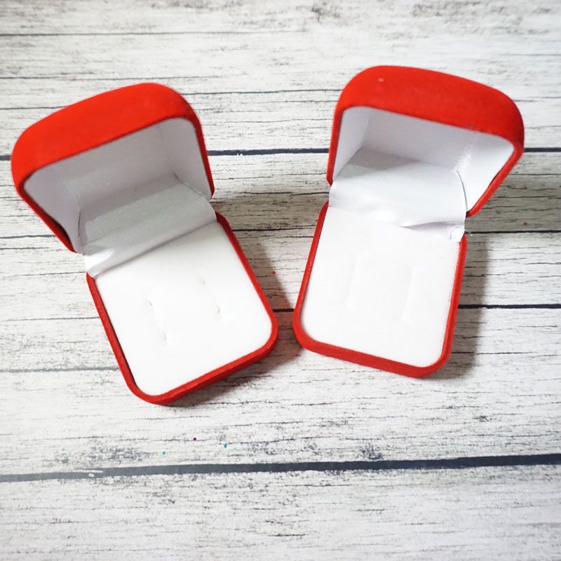 Tempat cincin dengan desain persegi bludru serta berkapasitas 2 cincin