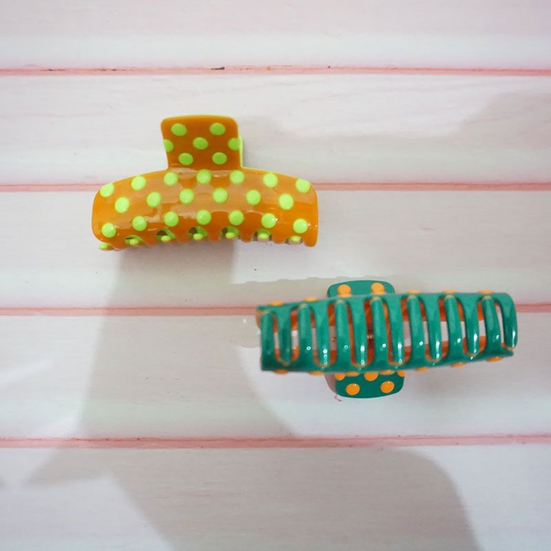 Jepit rambut dengan desain yang unik dan memiliki corak polkadot membuat penampilan anda terlihat cantik