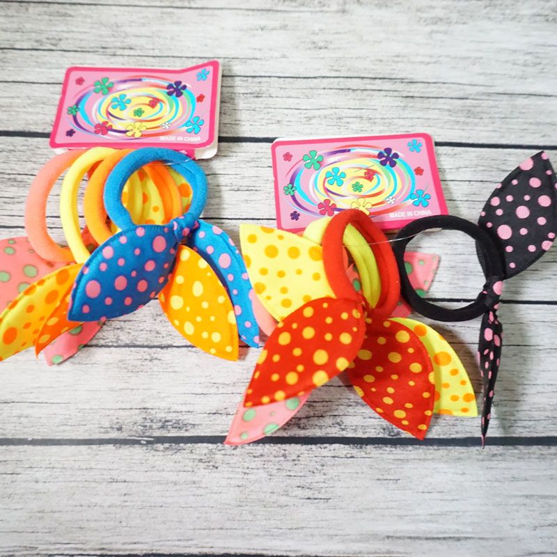 Ikat rambut kelinci dengan bahan yang halus serta memiliki aneka warna membuat penampilan anak terlihat cantik