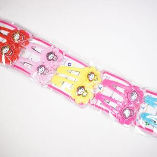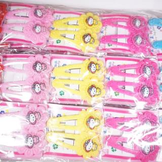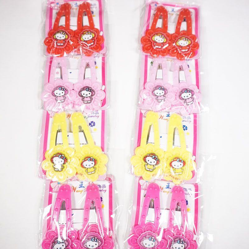 Jepit rambut tip top dengan desain yang unik dan terdapat hiasan bunga dan corak boneka dapat mempercantik penampilan anak anda