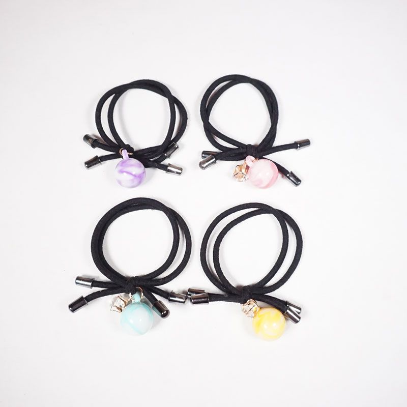 Ikat rambut dengan desain yang unik dan terdapat bandul bola dibawahnya dapat membuat penampilan anda terlihat cantik dan menarik