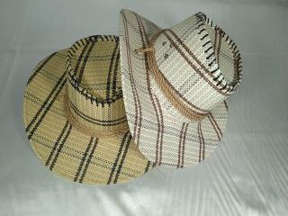 Topi dengan desain koboy dan terdapat motif garis kotak-kotak