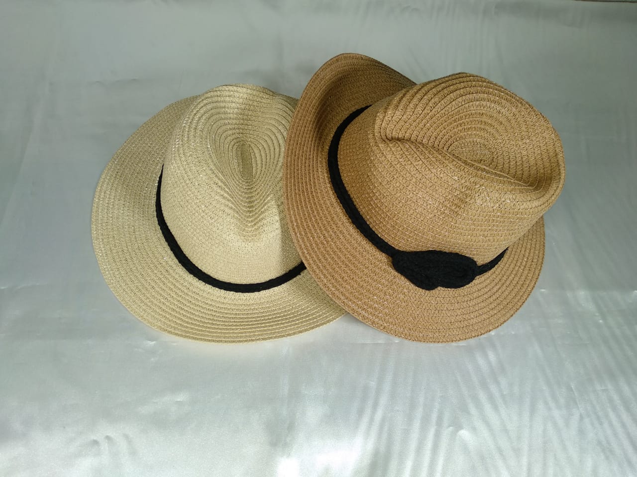Topi wanita dengan desain yang unik dan terdapat aksen tali hitam di tengahnya