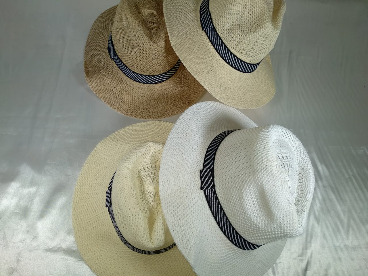 Topi Pria dengan aksen garis hitam putih di tengahnya membuat penampilan anda terlihat keren