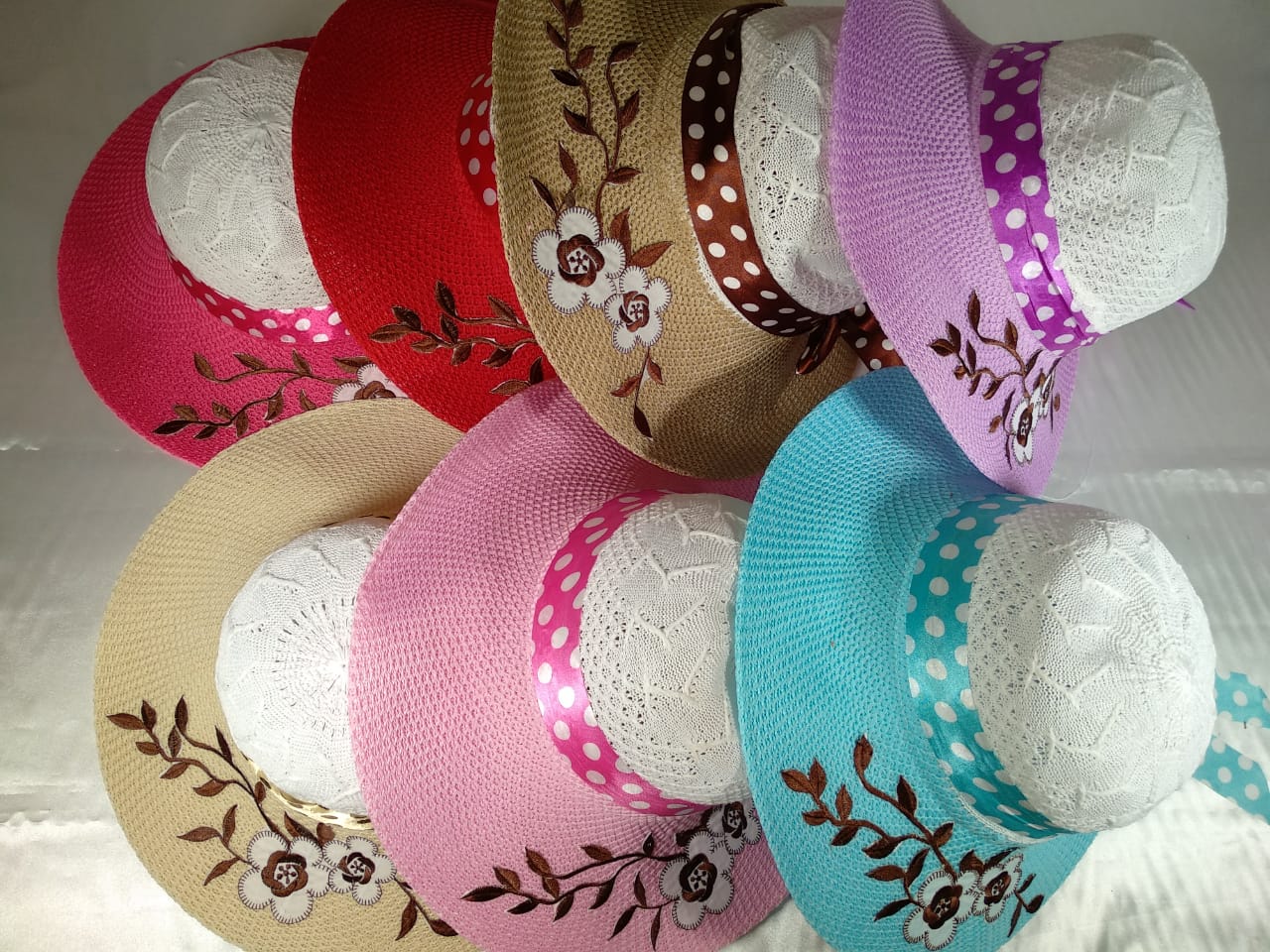 Topi Wanita dengan hiasan bunga di atasnya dan terdapat sabuk pita ditengahnya membuat penampilan anda terlihat cantik