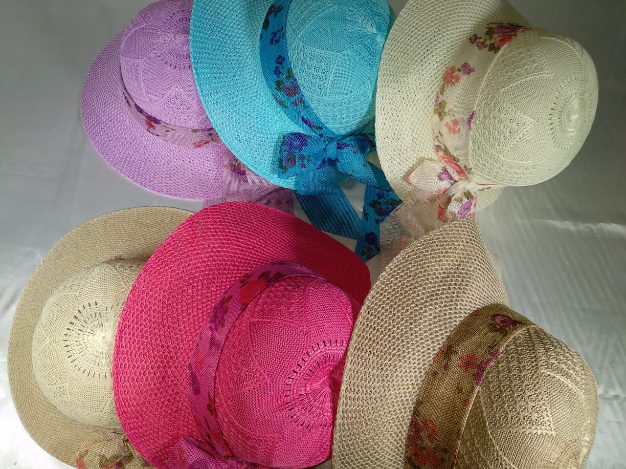 Topi wanita dengan asken sabuk pita bunga di tengahnya dan bahan yang tebal membuat penampilan anda terlihat cantik