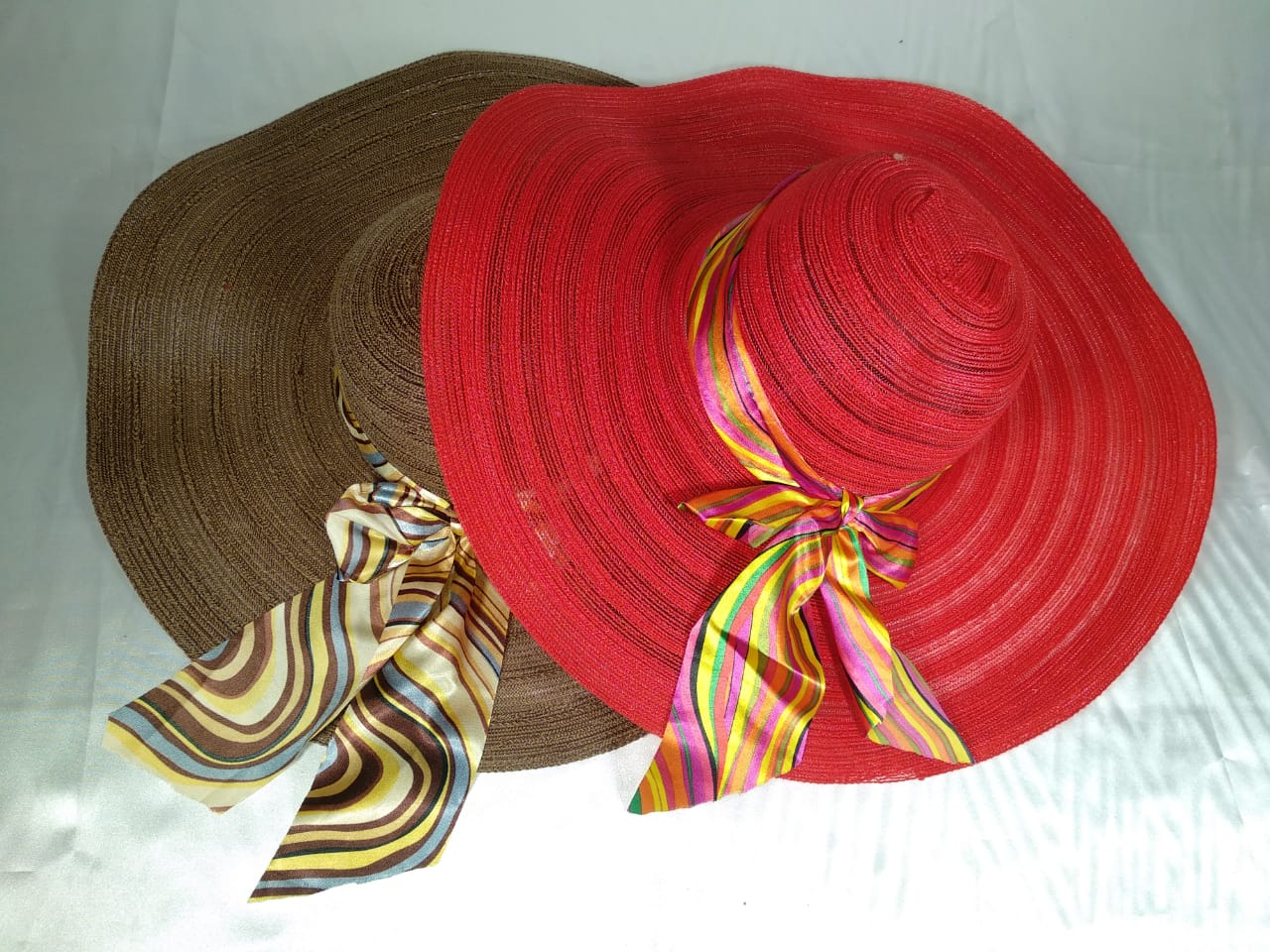 Topi nilon dengan sabuk pelangi di tengahnya membuat penampilan anda terlihat cantik