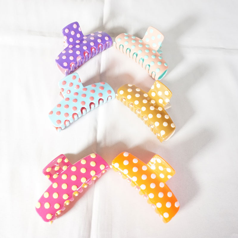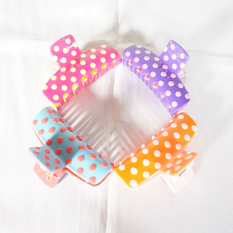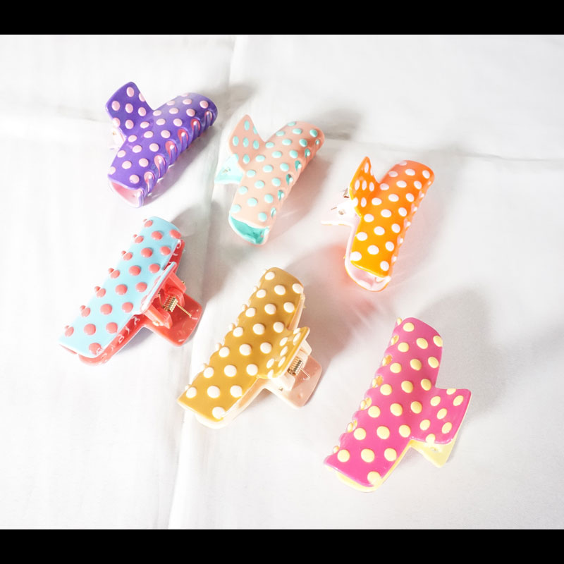 Jepit rambut dengan desain yang unik dan memiliki corak polkadot membuat penampilan anda terlihat cantik