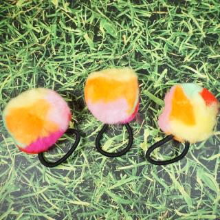 Ikat rambut dengan desain yang unik dan terdapat hiasan pom pom yang lembut membuat penampilan anda terlihat cantik