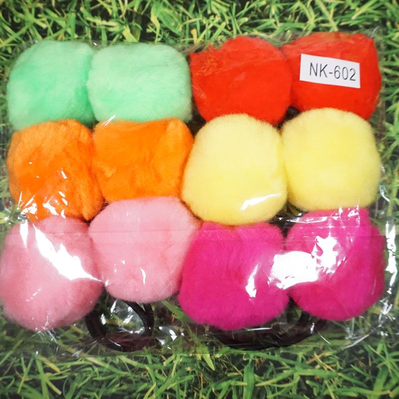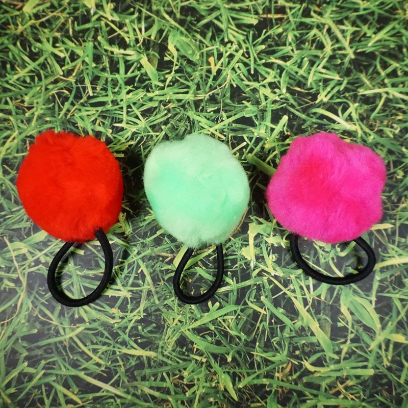 Ikat rambut dengan desain pom pom yang halus serta berbagai macam warna membuat penampilan anak terlihat cantik