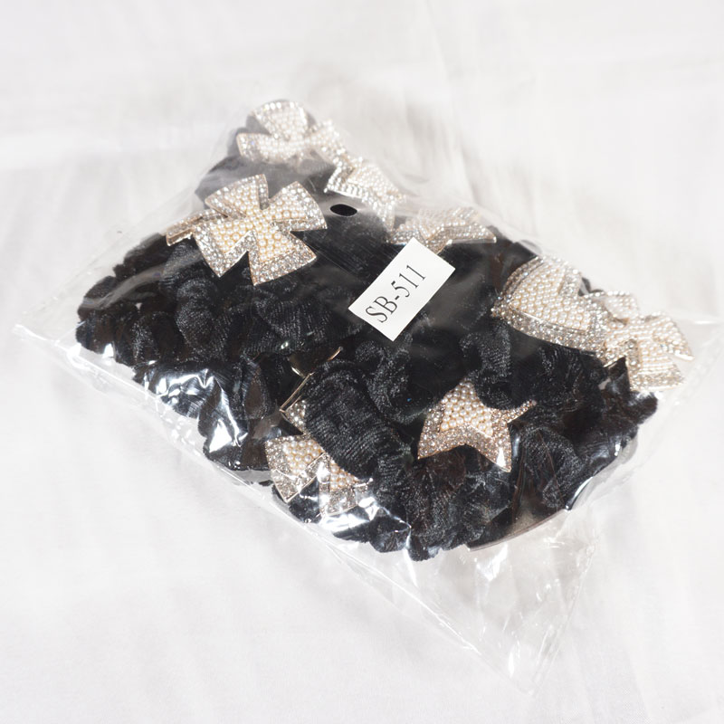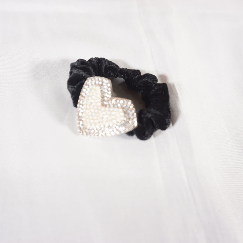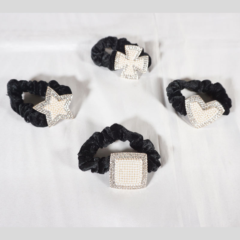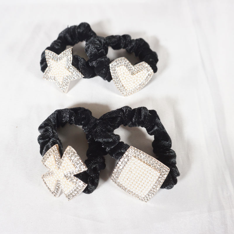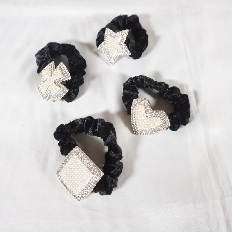 Ikat rambut bludru dengan desain yang unik dan terdapat hiasan mata mata di tengahnya membuat penampilan anda terlihat cantik