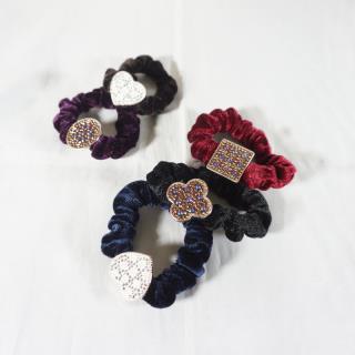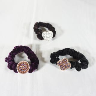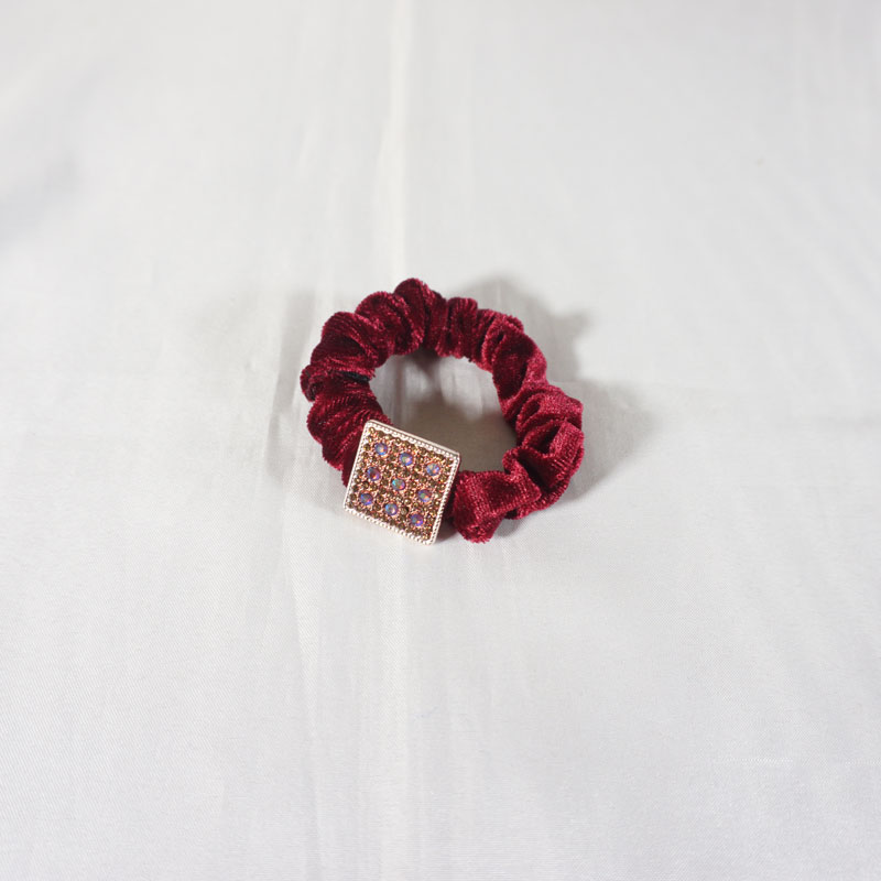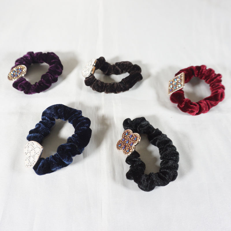 Ikat rambut bludru dengan desain yang unik dan terdapat hiasan mata mata di tengahnya membuat penampilan anda terlihat cantik