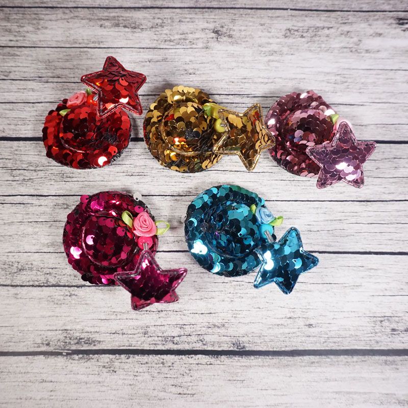 Jepit pir dengan desain topi dan terdapat hiasan bintang diatasnya membuat penampilan anak terlihat cantik