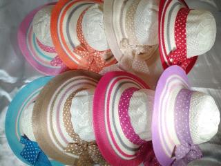Topi wanita dengan desain pelangi dan terdapat sabuk pita di tengahnya membuat penampilan anda terlihat cantik