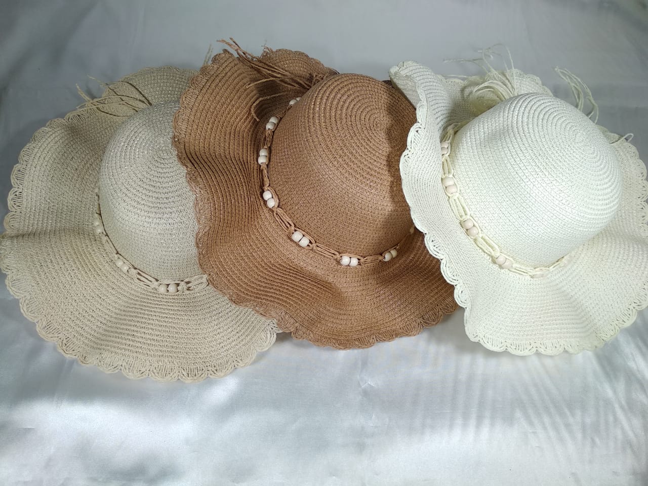 Topi wanita dengan desain pinggir gelombang dan terdapat hiasan sabul tali di tngahnya