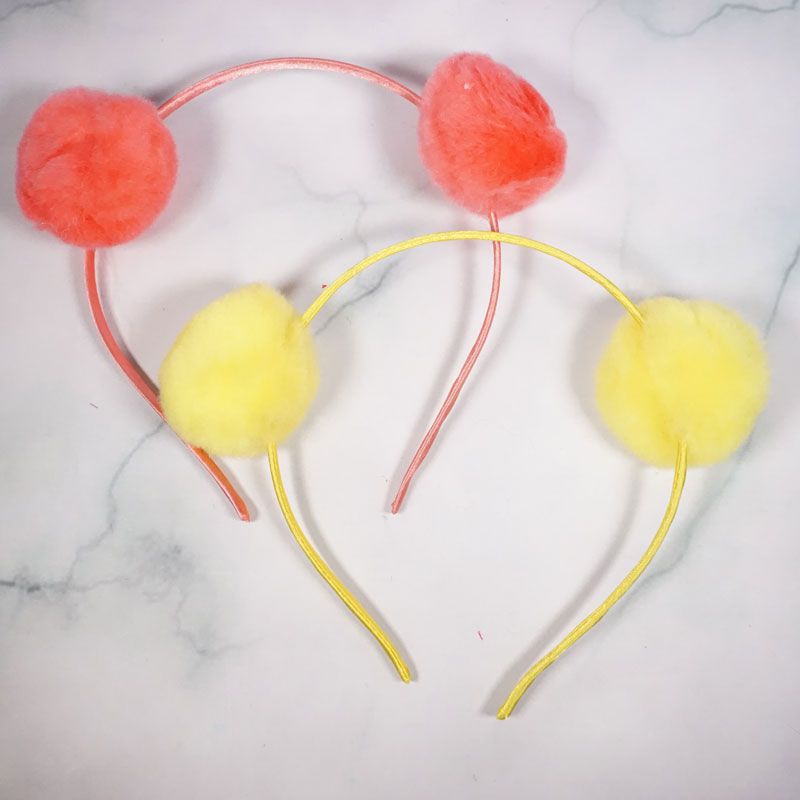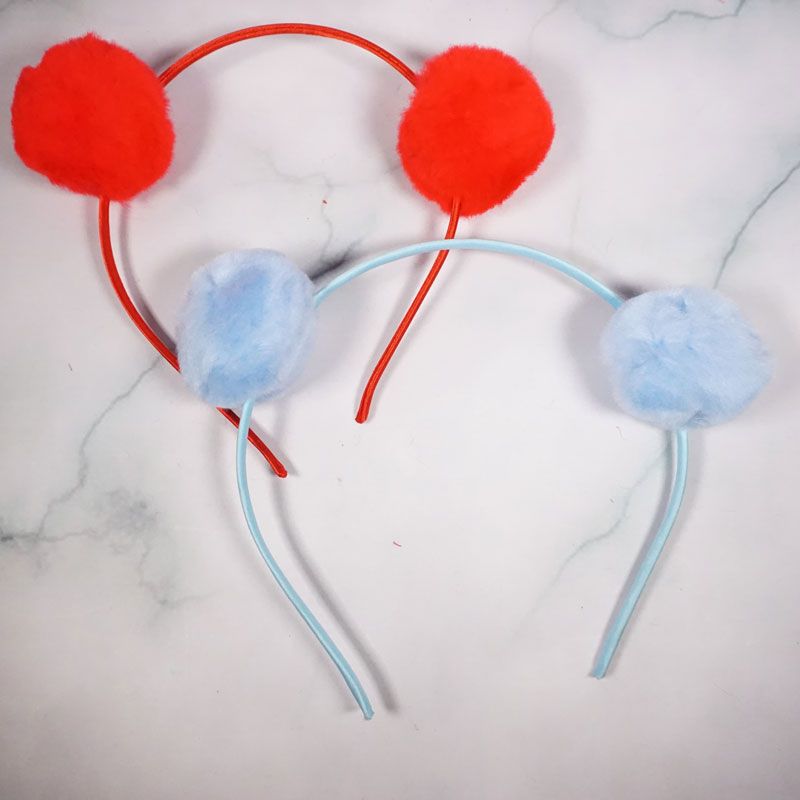 Bando dengan desain pom pom yang lembut membuat penampilan anak terlihat cantik dan menggemaskan