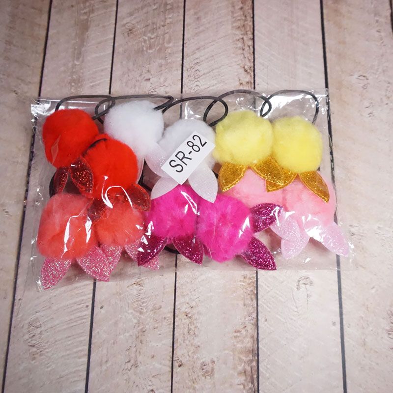 Ikat rambut dengan desain pom pom yang lembut membuat penampilan anak terlihat cantik dan menggemaskan