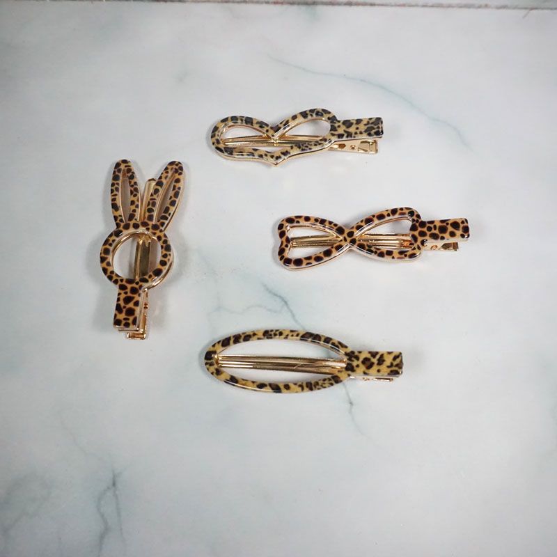 Jepit rambut dengan berbagai macam desain yang unik dan memiliki motif leopard