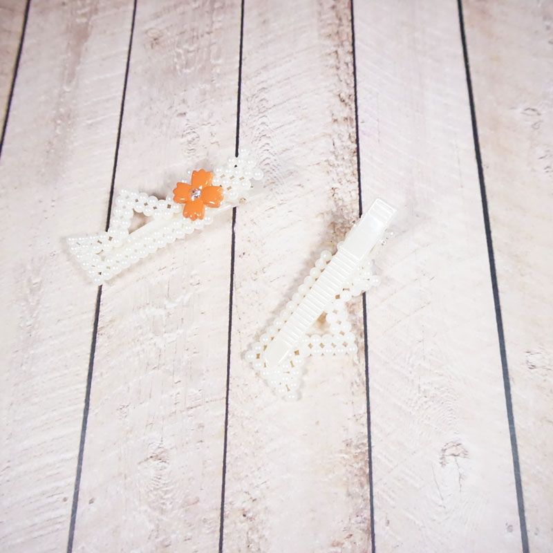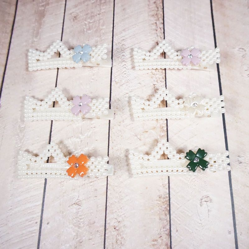 Jepit slip mutiara dengan desain yang unik dan terdapat hiasan bunga diatasnya