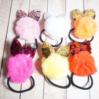 Ikat rambut pom pom dengan desain pom pom yang lembut membuat penampilan anak terlihat cantik