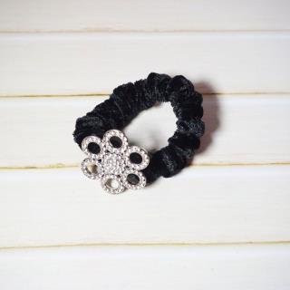 Ikat rambut bludru yang lembut dan terdapat hiasan yang unik di tengahnya