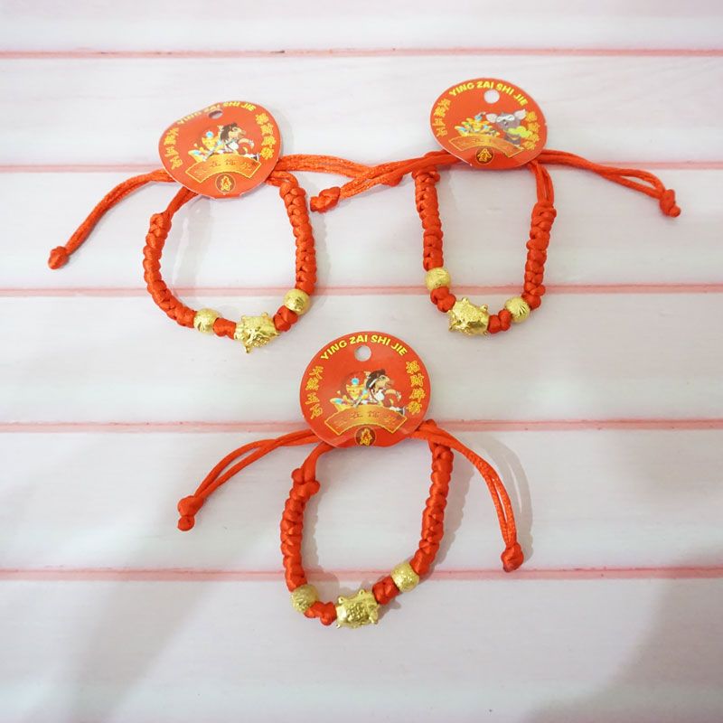 Gelang tali merah dengan desain yang unik