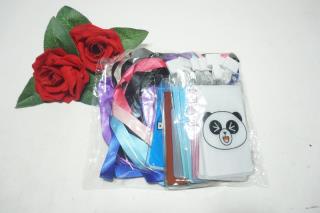 Warna: pink muda, pink tua, biru muda, biru tua, hitam, ungu, kuning