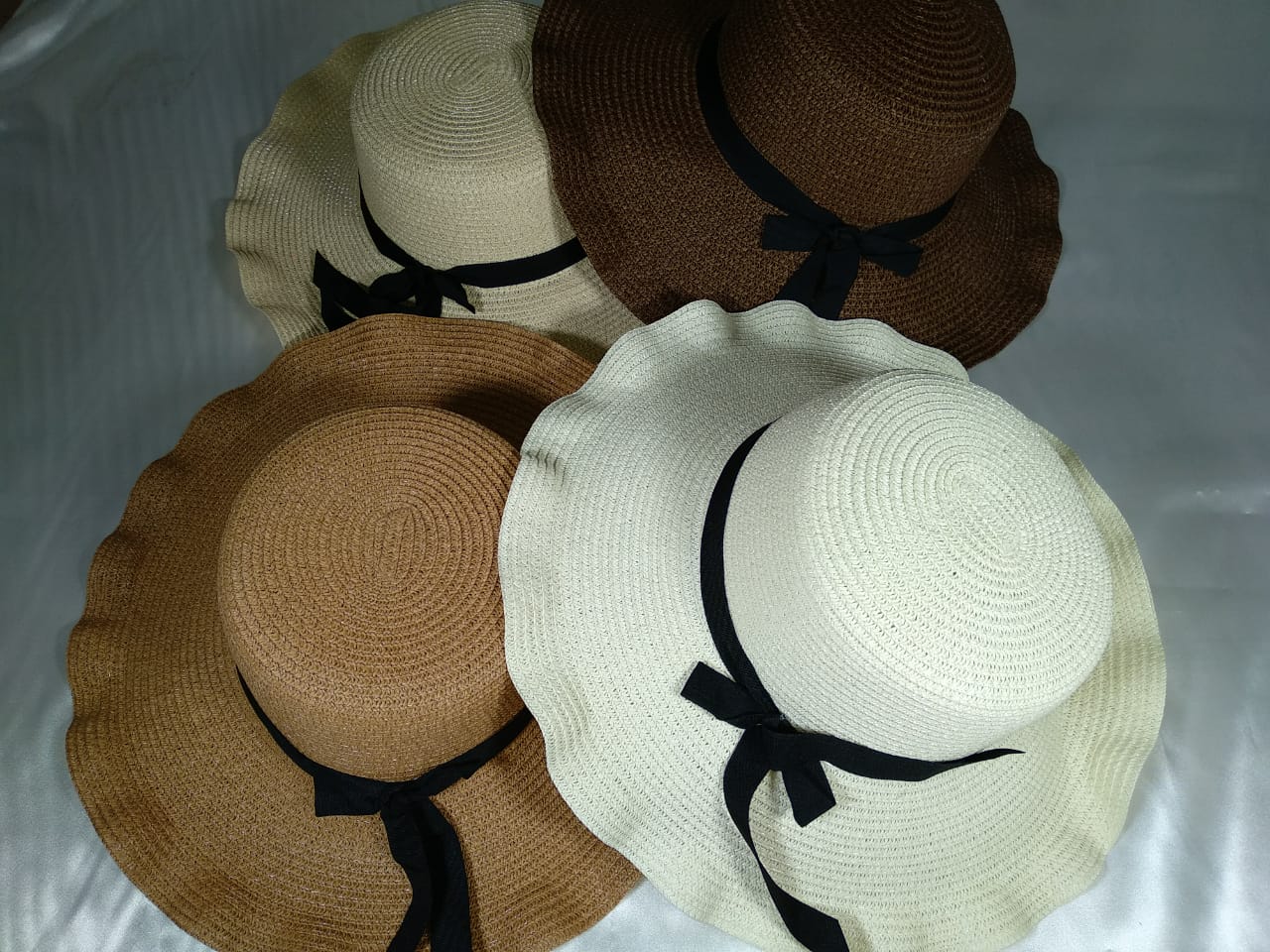 Topi Wanita dengan pinggir gelombang dan sabuk pita hitam dan dapat mempercantik penampilan anda