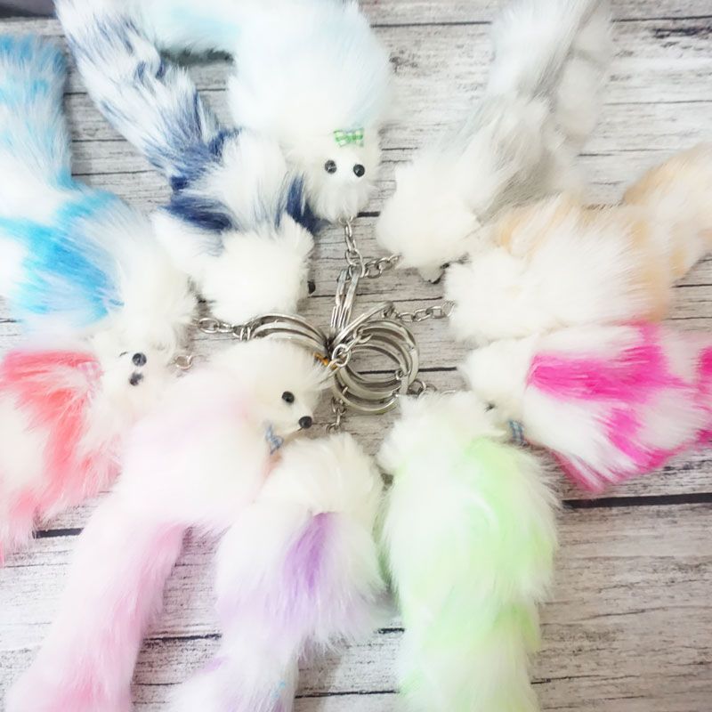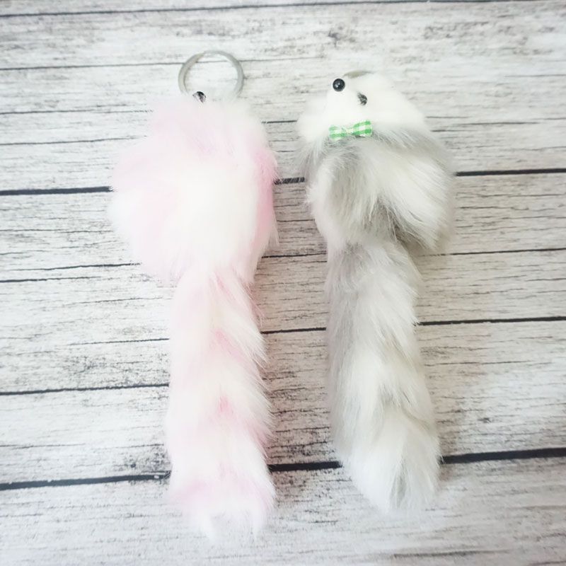 Gantungan kunci bulu dengan bahan yang lembut dan halus dapat digunakan untuk aksesoris tas