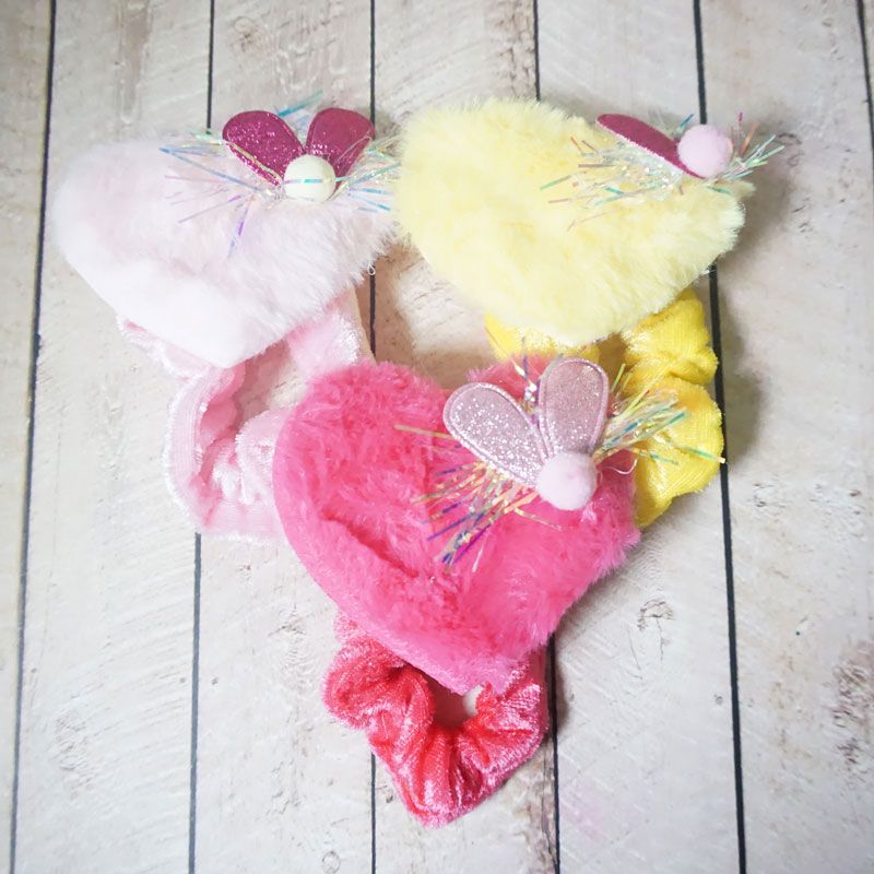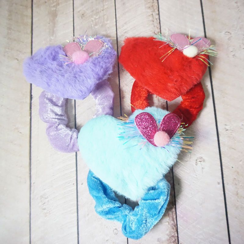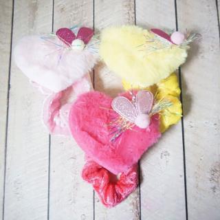 Ikat rambut dengan dengan bahan yang halus serta terdapat hiasan love di tengahnya membuat penampilan anak terlihat cantik
