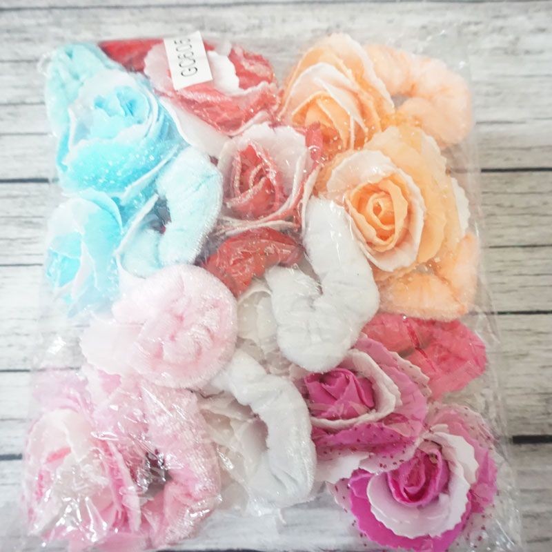Ikat rambut dengan bahan bludru dan terdapat hiasan bunga mawar di tengahnya membuat penampilan anda terlihat cantik