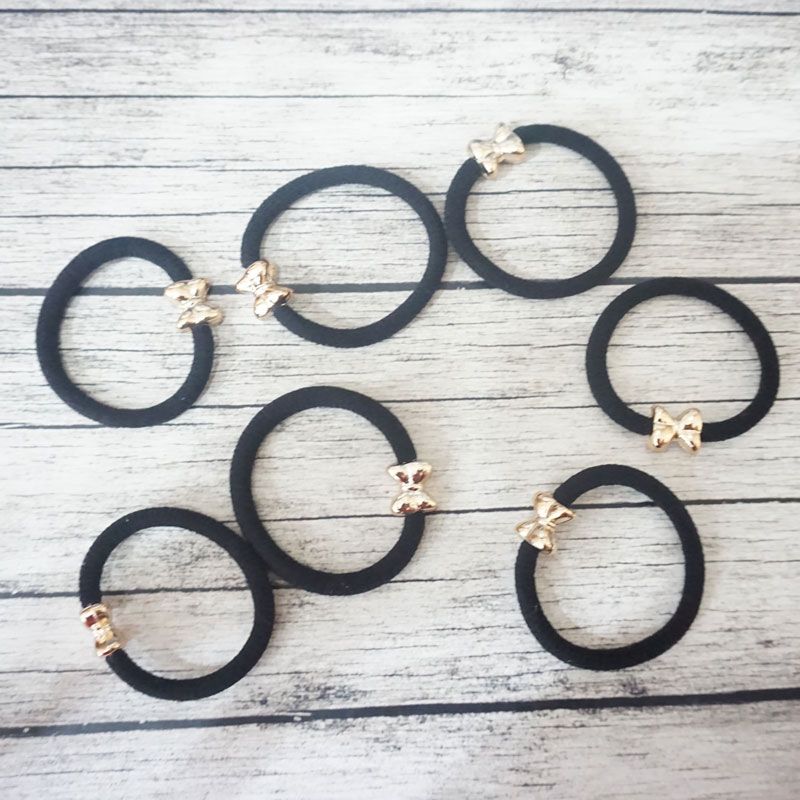Ikat rambut dengan bahan yang tebal dan terdapat hiasan bandul pita di tengahnya membuat penampilan anda terlihat cantik