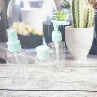 Botol spray set dengan desain berbagai macam bentuk botol dan cocok digunakan untuk traveling