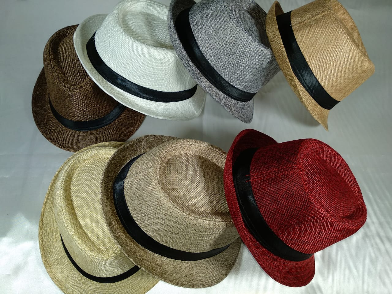 Topi pria dengan bahan yang lembut dan terdapat sabuk hitam ditengahnya
