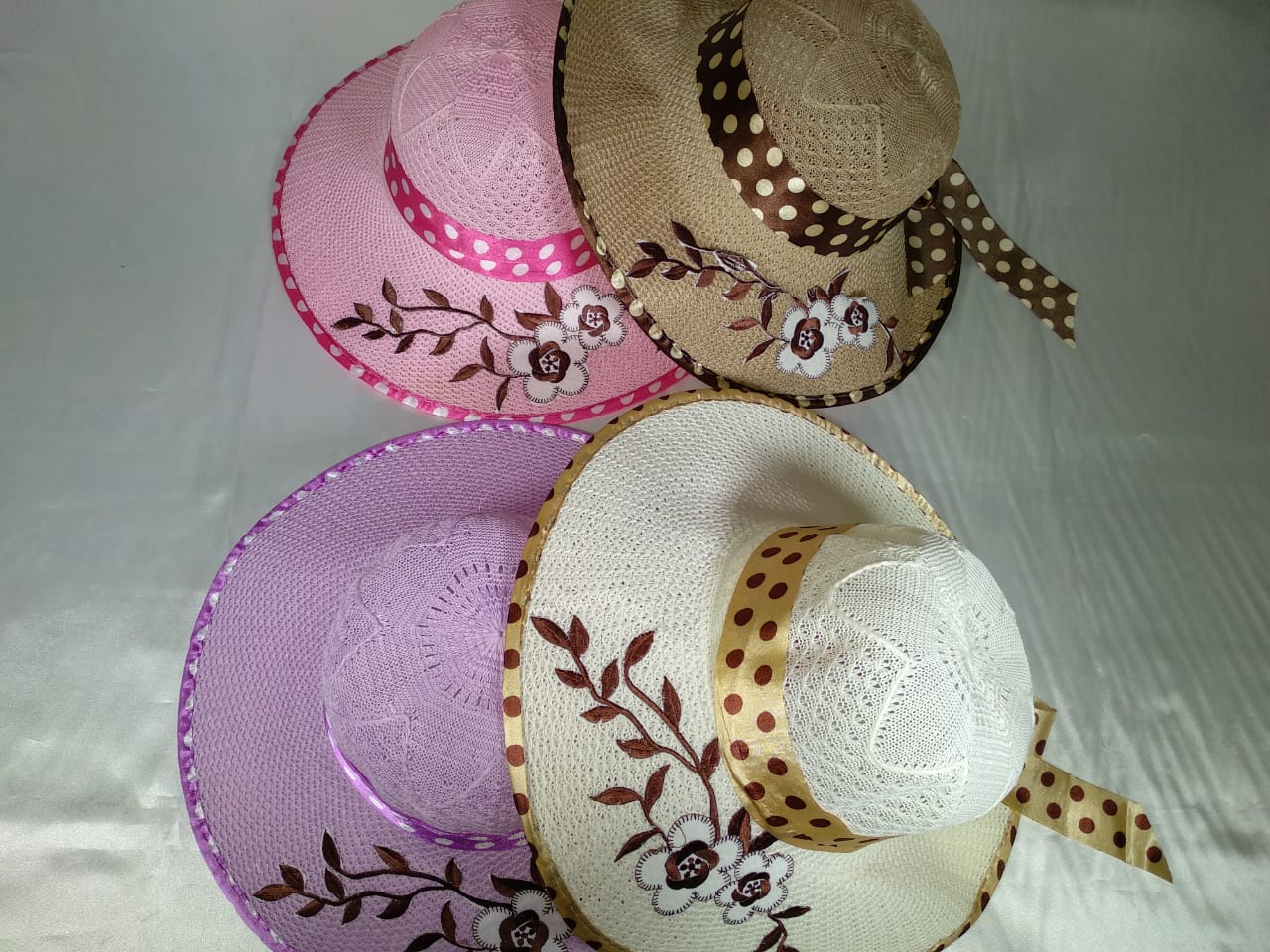 Topi wanita dengan hiasan bunga dan terdapat sabuk pita ditengahnya membuat penampilan anda terlihat cantik dan menarik