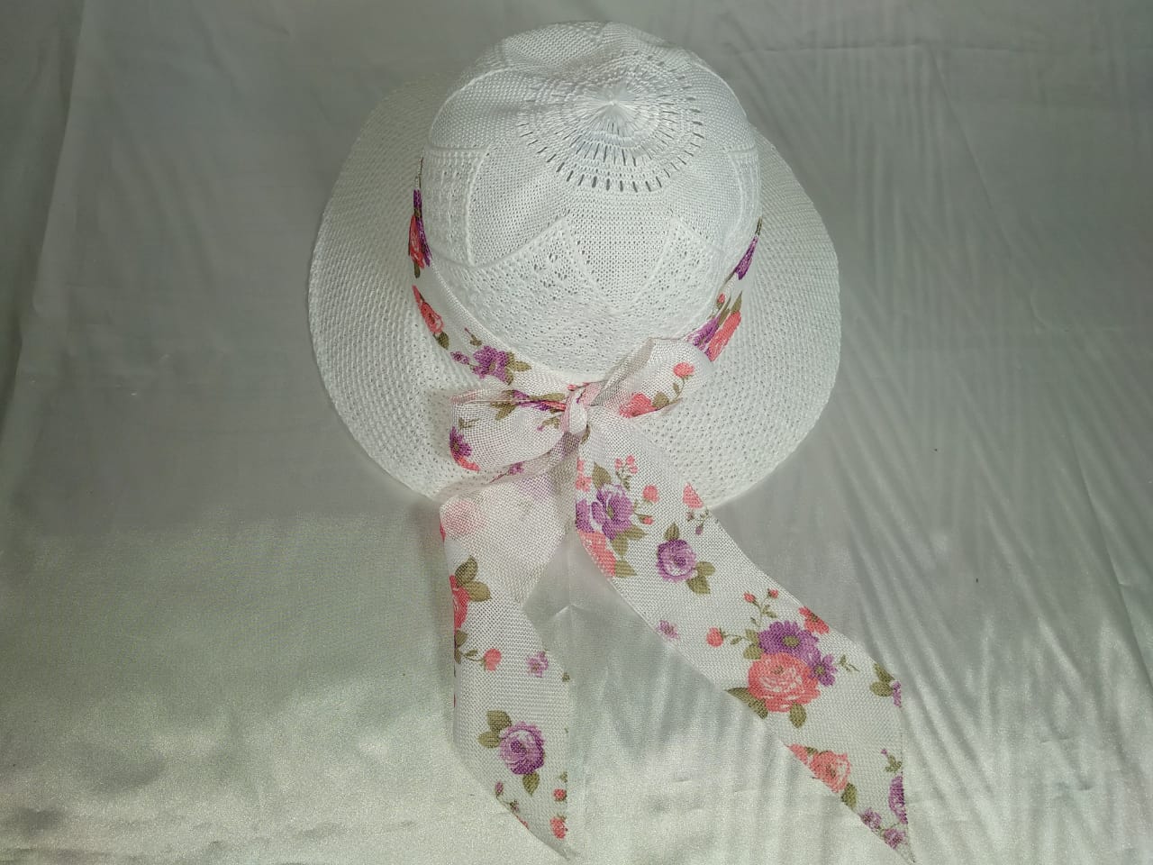 Topi wanita dengan aksen sabuk pita motif bunga dan bahan yang tebal