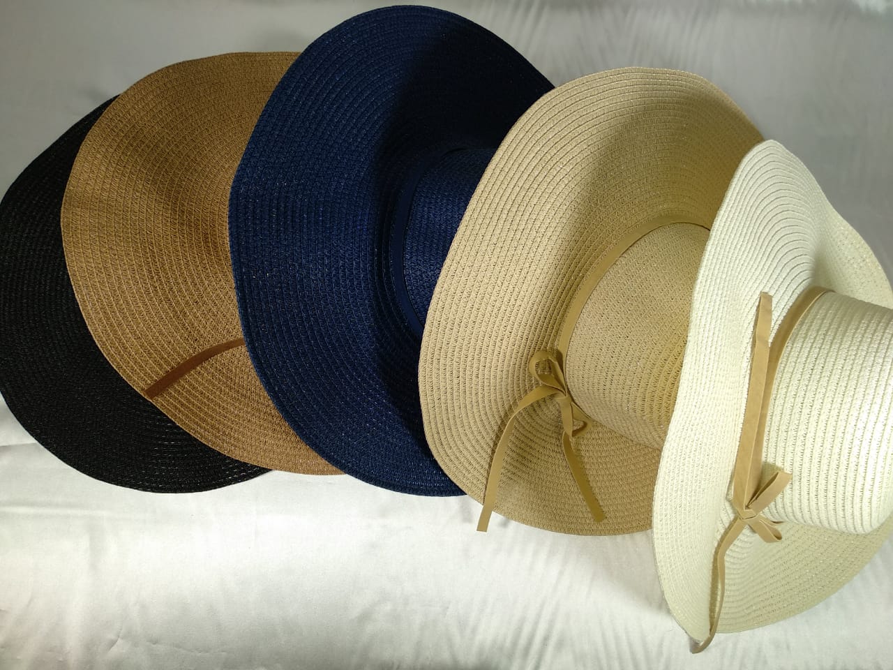 Topi wanita dengan aksen tali di tengahnya dan bahan yang tebal