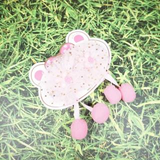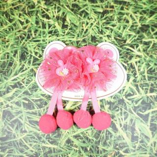 Jepit rambut dengan desain rumbai bunga di tengahnya dan terdapat hiasan boneka di tengahnya