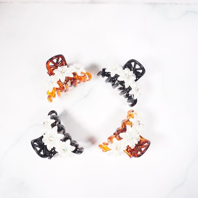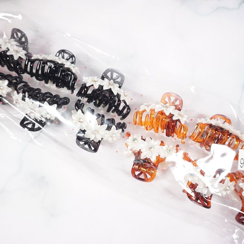 Jepit rambut dengan desain yang unik dan terdapat hiasan bunga di tengahnya membuat penampilan anda terlihat cantik