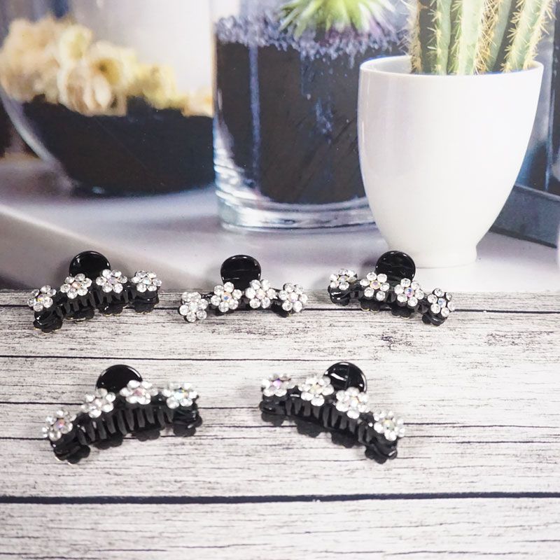 Jepit rambut dengan desain yanhg unik dan terdapay hiasan bunga kecil di tengahnya membuat penampilan anda terlihat cantik