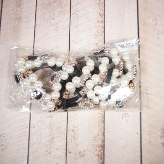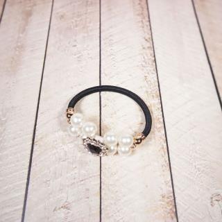 Ikat rambut dengan hiasan mutiara dan terdapat aksen mata mata warna warni membuat penampilan anda terlihat cantik