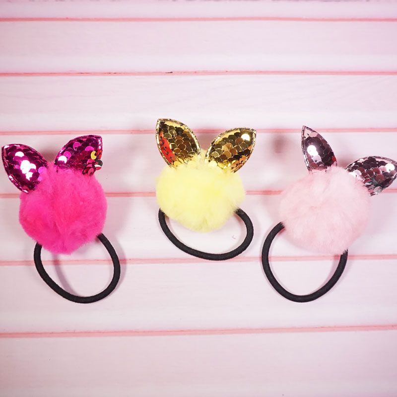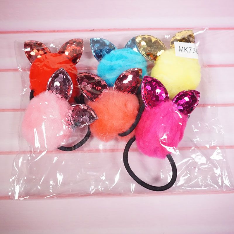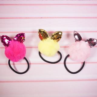 Ikat rambut dengan desain pom pom dan bahan yang lembut membuat penampilan anak terlihat cantik dan menggemaskan