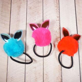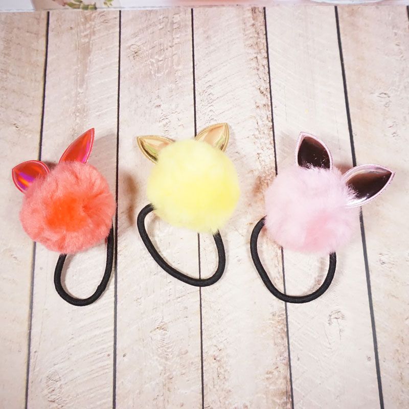 Ikat rambut dengan desain yang unik dan dilengkapi pom pom yang lembut membuat penampilan anda terlihat cantik