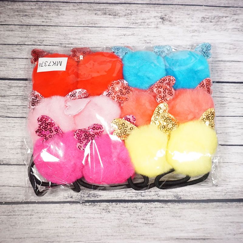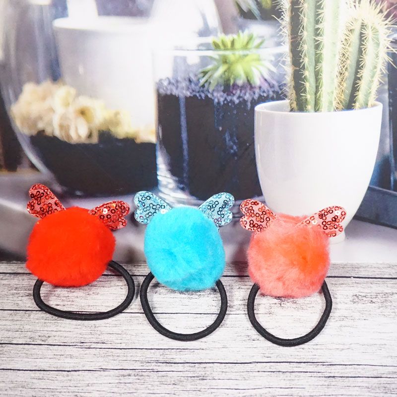 Ikat rambut dengan desain yang unik dan dilengkapi hiasan pom pom yang lembut membuat penampilan anda terlihat cantik dan menggemaskan