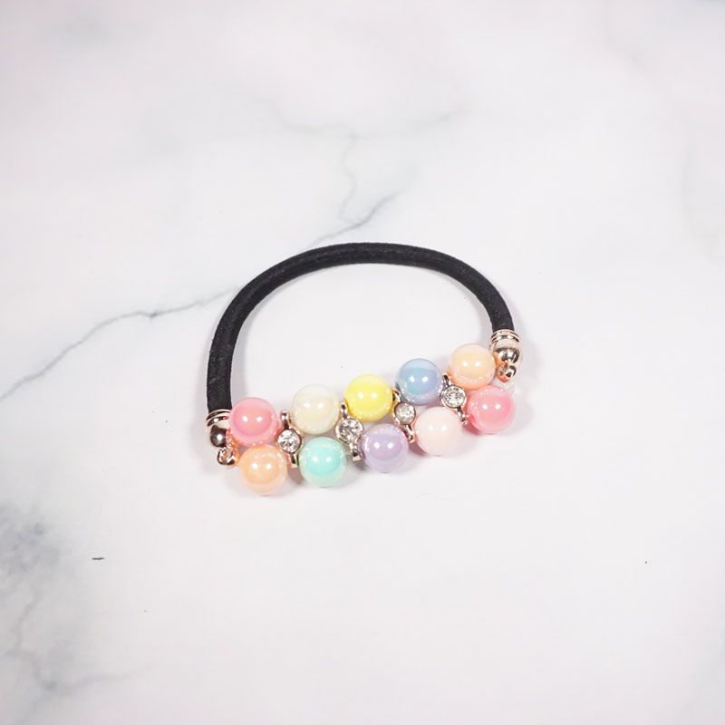 Ikat rambut dengan desain yang unik dan terdapat aksen mutiara pada ikat rambutnya membuat penampilan anda terlihat cantik