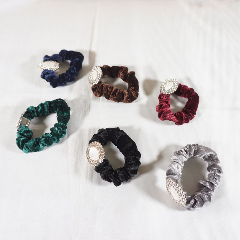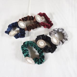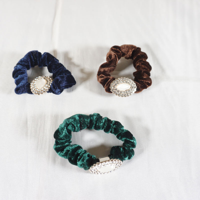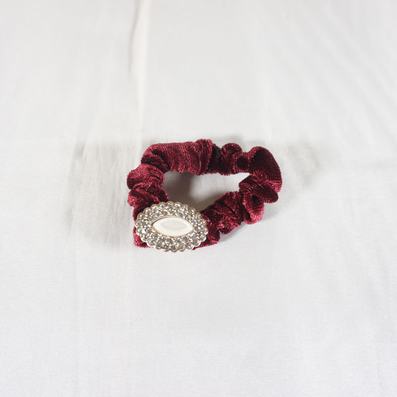 Ikat rambut bludru dengan desain yang unik dan terdapat hiasan mata mata di tengahnya membuat penampilan anda terlihat cantik