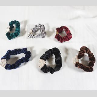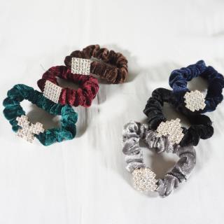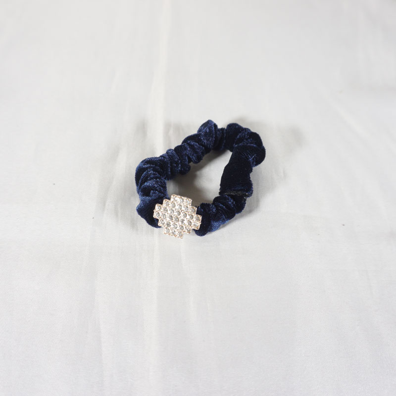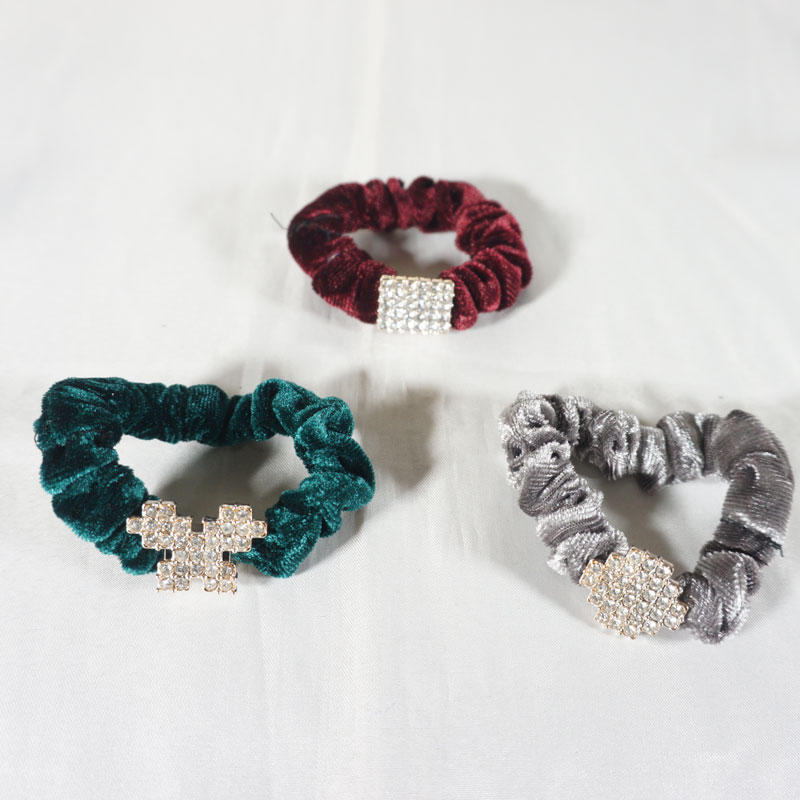 Ikat rambut bludru dengan desain yang unik dan terdapat hiasan mata mata di tengahnya membuat penampilan anda terlihat cantik