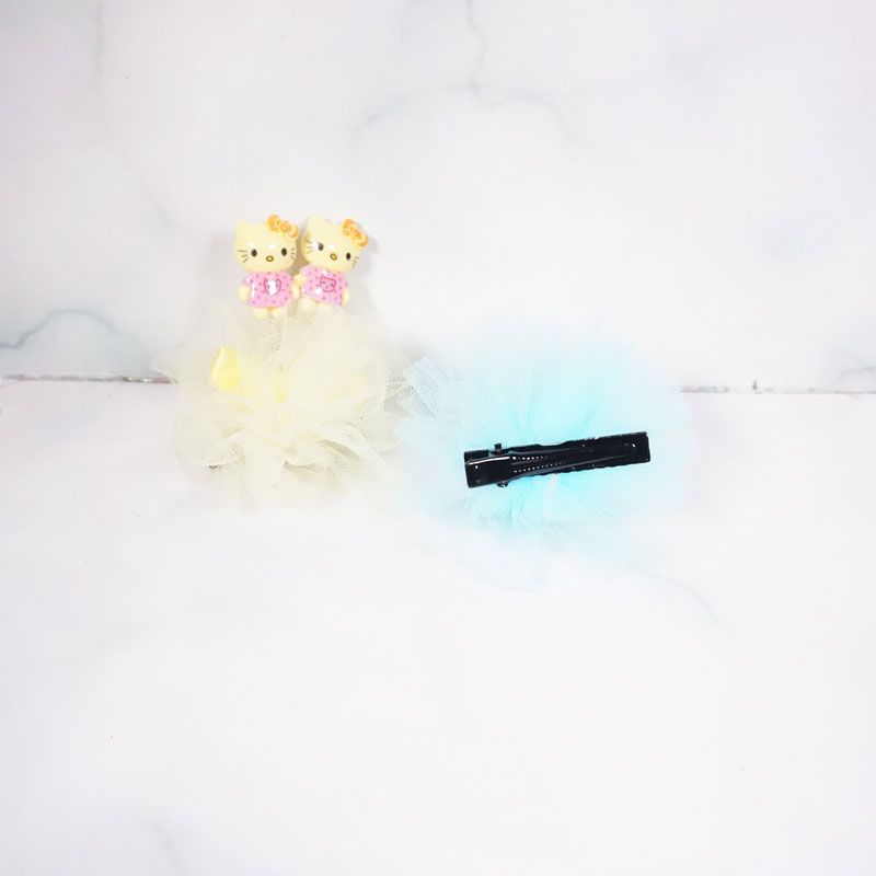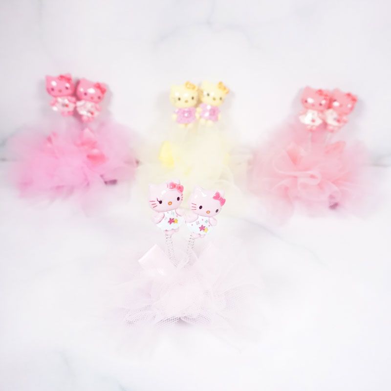 Jepit pir dengan desain yang unik dan terdapat hiasan boneka hellokitty diatasnya membuat penampilan anak terlihat cantik dan menggemaskan